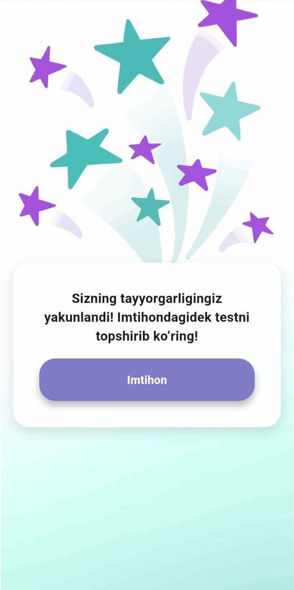 Dastur sizga qachon imtihonga tayyor bo‘lganingizni xabar qiladi