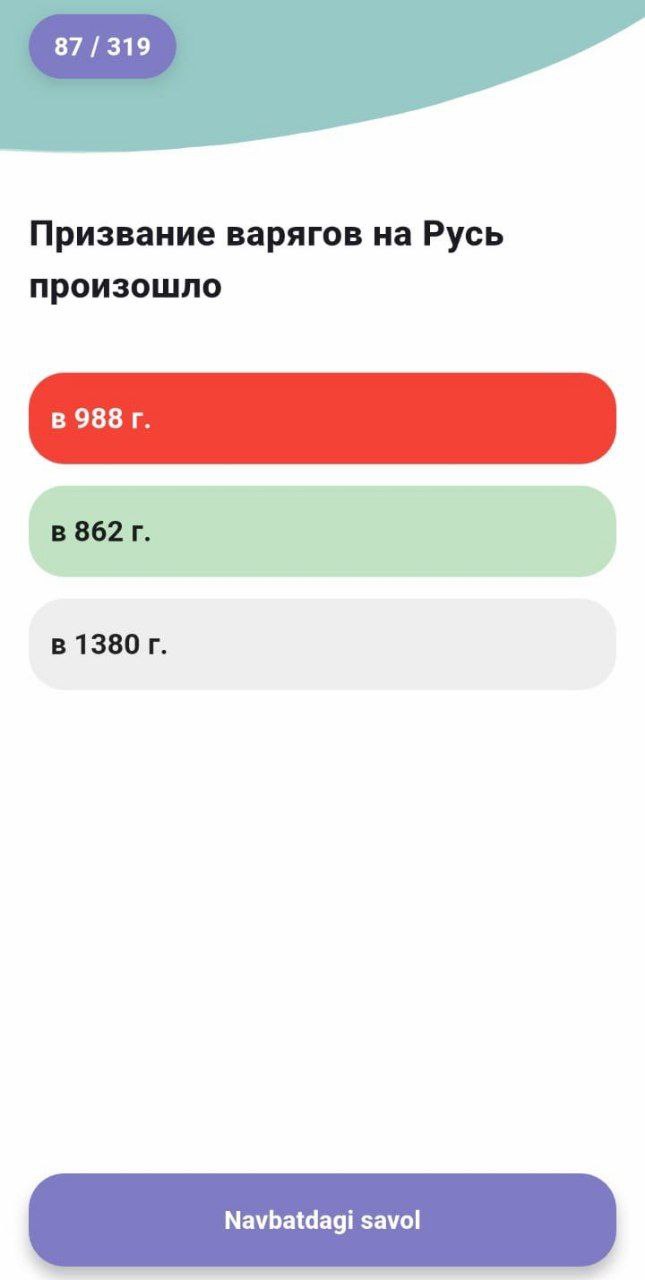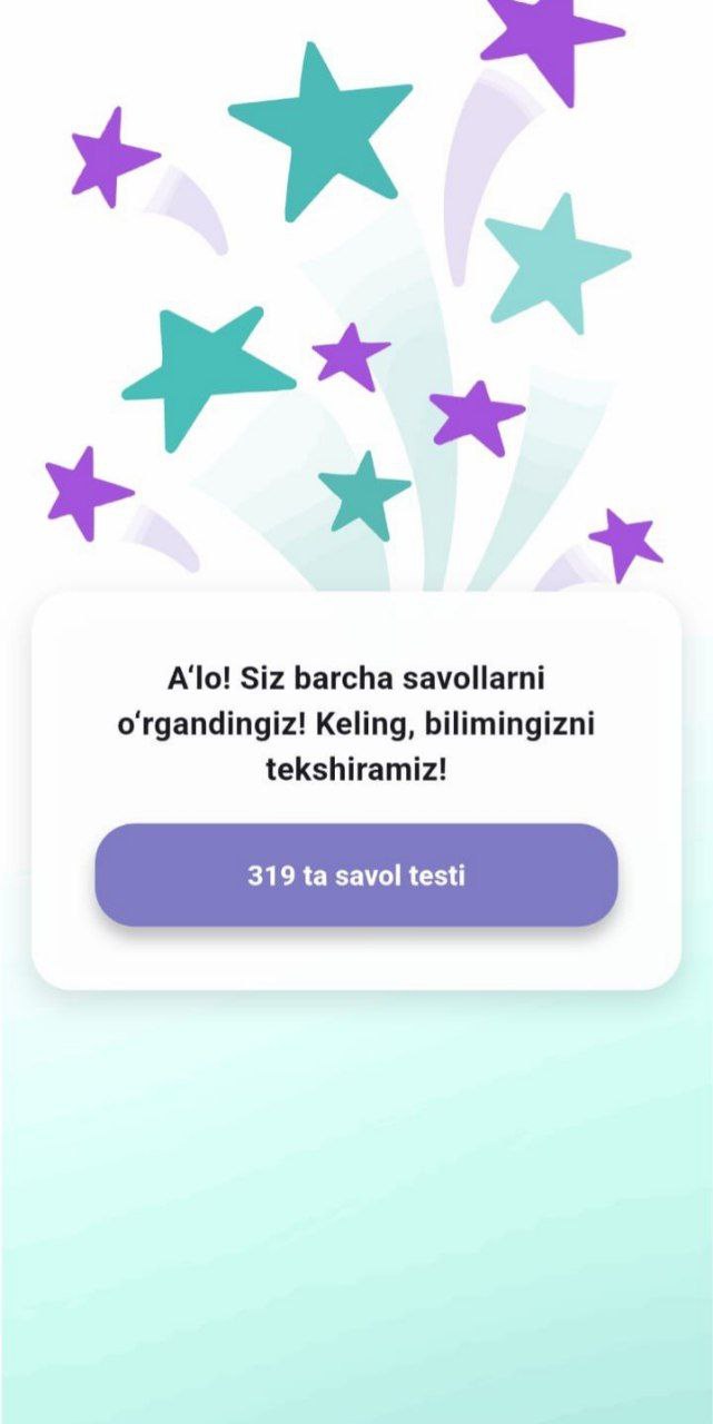 Yod olgan savollaringiz avtomatik ravishda yangilariga almashtiriladi, barcha 319 ta savolni o‘zlashtirmaguningizcha